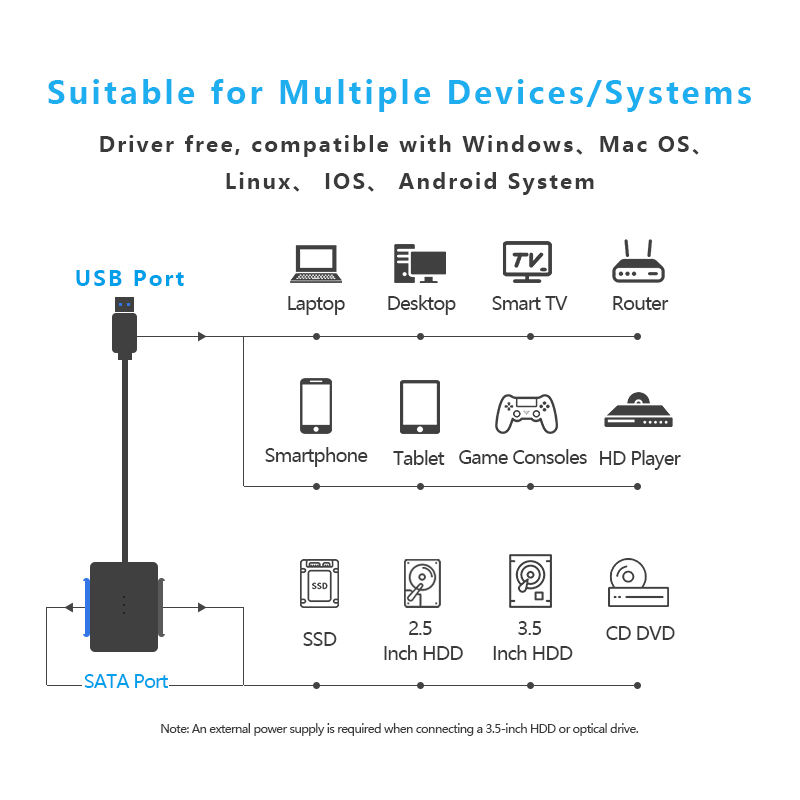 Wholesale USB3.0 Hard Drive Adapter Cable PVC Jacket SSD 2.5/3.5 Inch HDD Dual Disk Read SATA Cable with UASP for Laptop Desktop