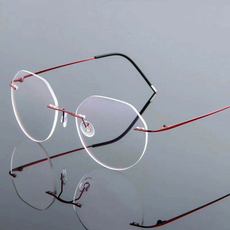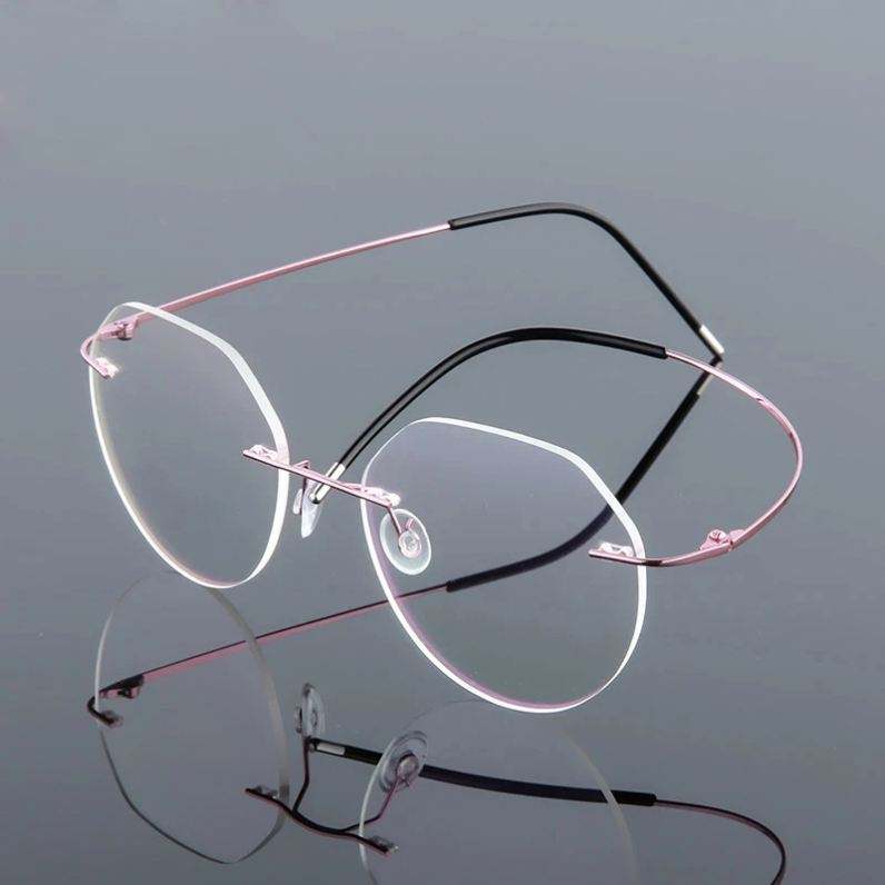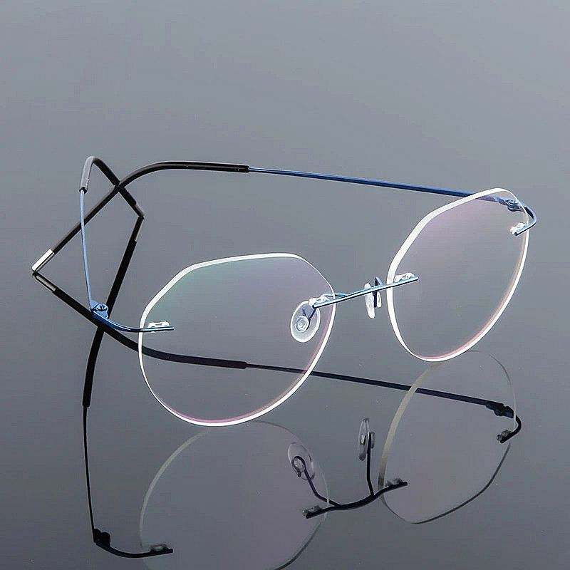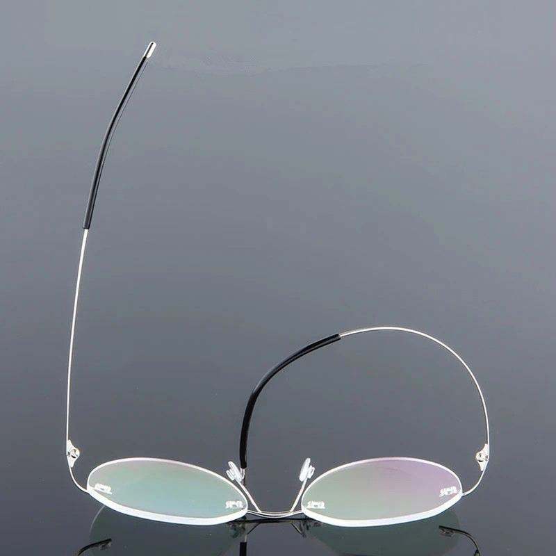 กรอบแว่นตาคอมพิวเตอร์ทรงกลมโลหะน้ำหนักเบาพิเศษแบบไร้ขอบ ทำจากไทเทเนียมเมมโมรี่ สำหรับผู้ชายและผู้หญิง ขายส่ง