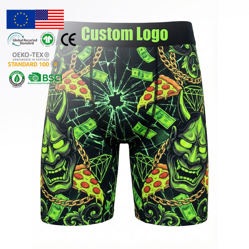 กางเกงบ็อกเซอร์ชายขายส่ง ลายกราฟฟิตีนีออนสุดเท่ พิมพ์ลายดิจิตอล ยืดหยุ่นสูง แห้งเร็ว ผ้าไผ่