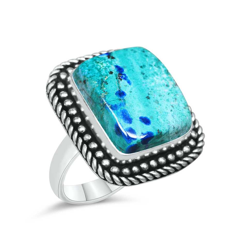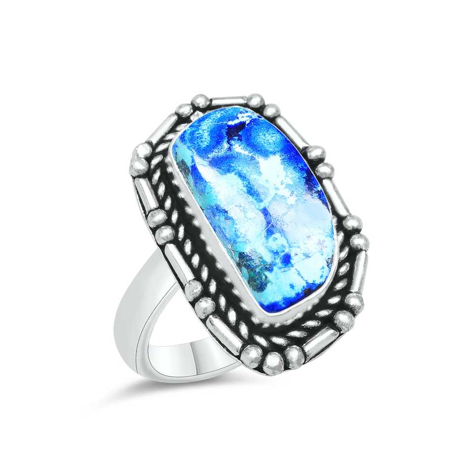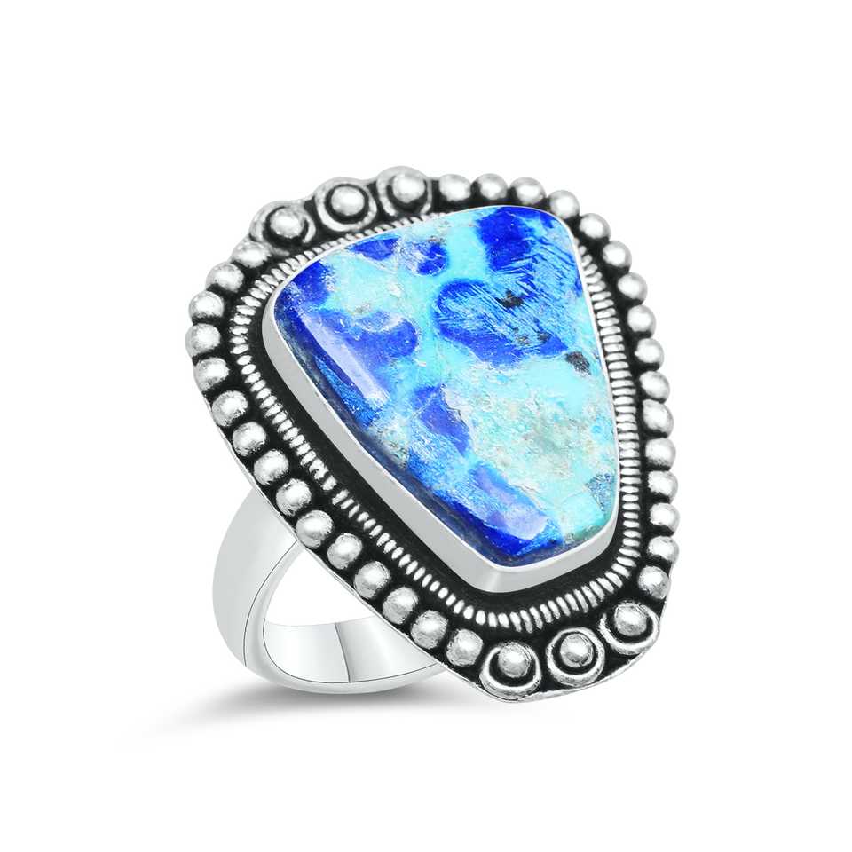 แหวนทองเหลืองประดับพลอยอะซูไรต์ทำมือ ดีไซน์ไม่ซ้ำใคร สำหรับงานหมั้น งานแต่งงาน ของขวัญสำหรับผู้หญิง ชุบเงิน ขายส่งแบบแพ็ค