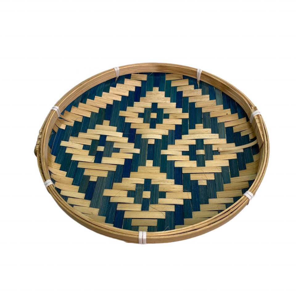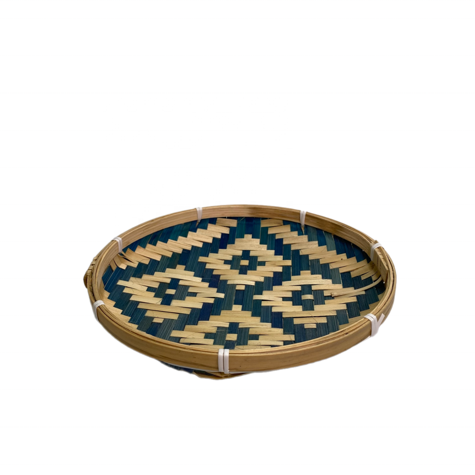 Wholesale Unique Model Round Natural Bamboo Plate Colorful Patterns for Storing Items Kitchen or Hanging on the Wall Decoration