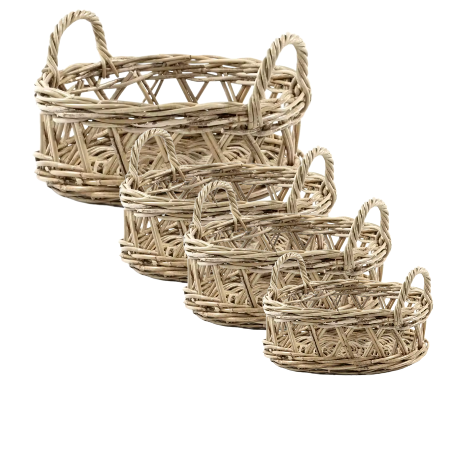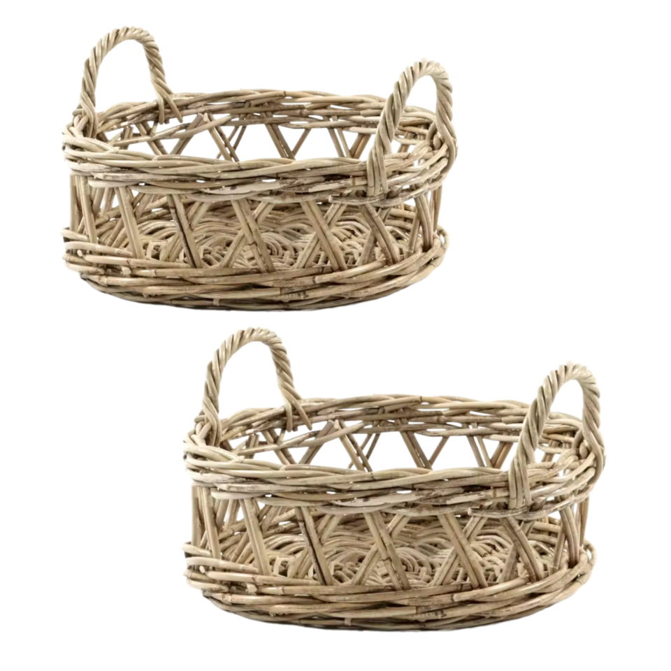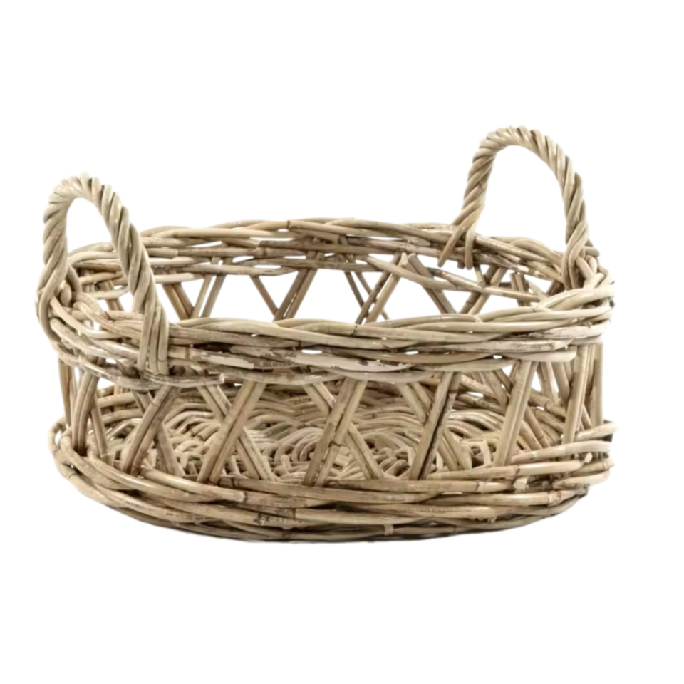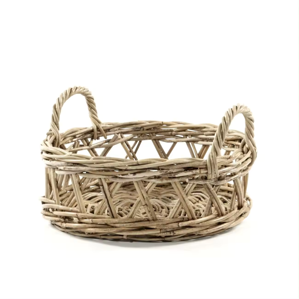 ตะกร้าเก็บของใช้ในครัวเรือนทำจากหวายธรรมชาติแบบขายส่ง ขนาด 40x40x10 ซม. ปลอดภัยสำหรับอาหาร คุณภาพสูง ทนทานต่อการใช้งาน