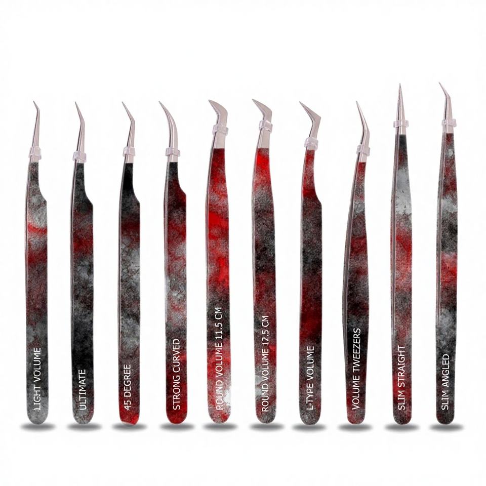 ขายส่งขนตาปลอมไล่สีแดงดำแบบพิเศษ พร้อมแหนบติดขนตาแบบหนา ปลายแหลม จับแน่น ปรับแต่งได้