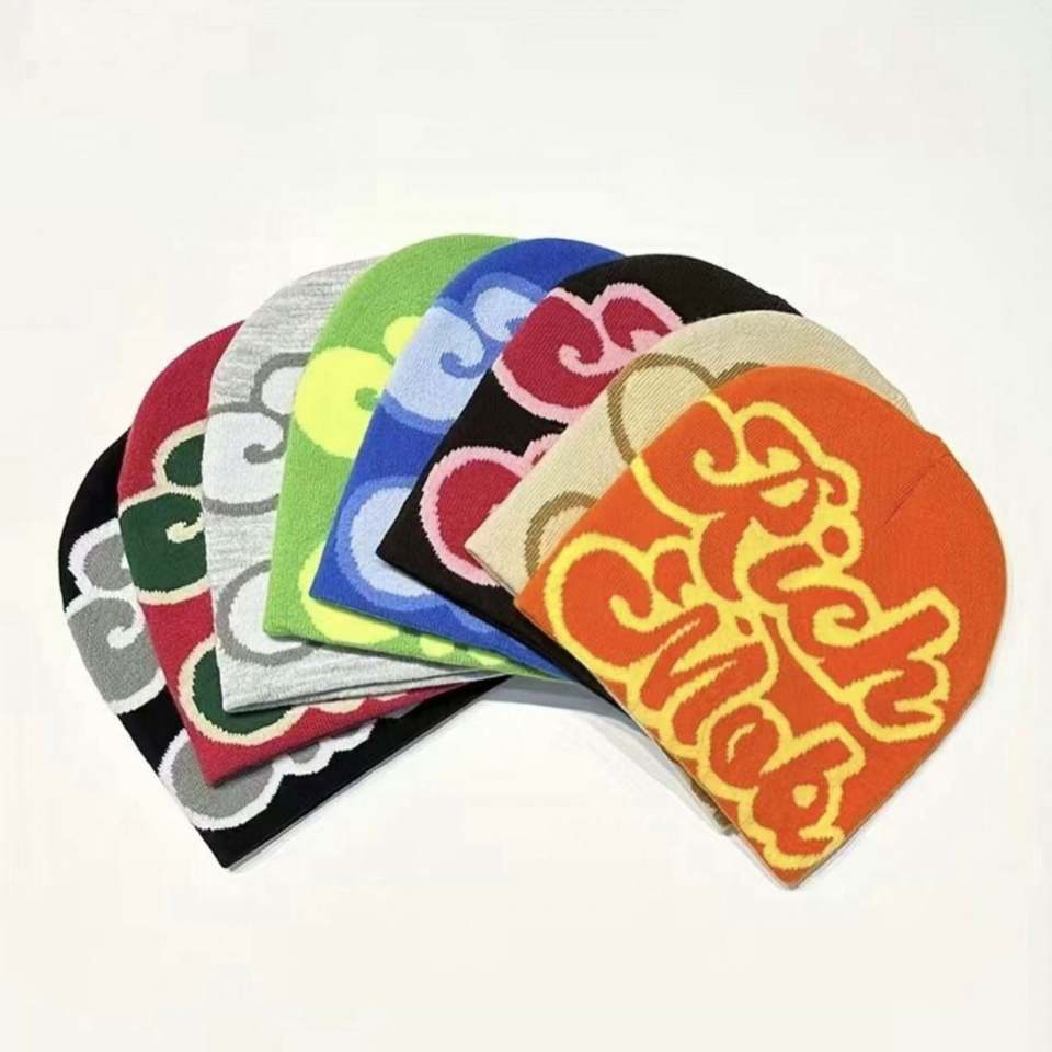 Wholesale Unisex All Over Puff Print Acrylic Made Custom Winter Knitted Hats Jacquard Skully Beanies Hat