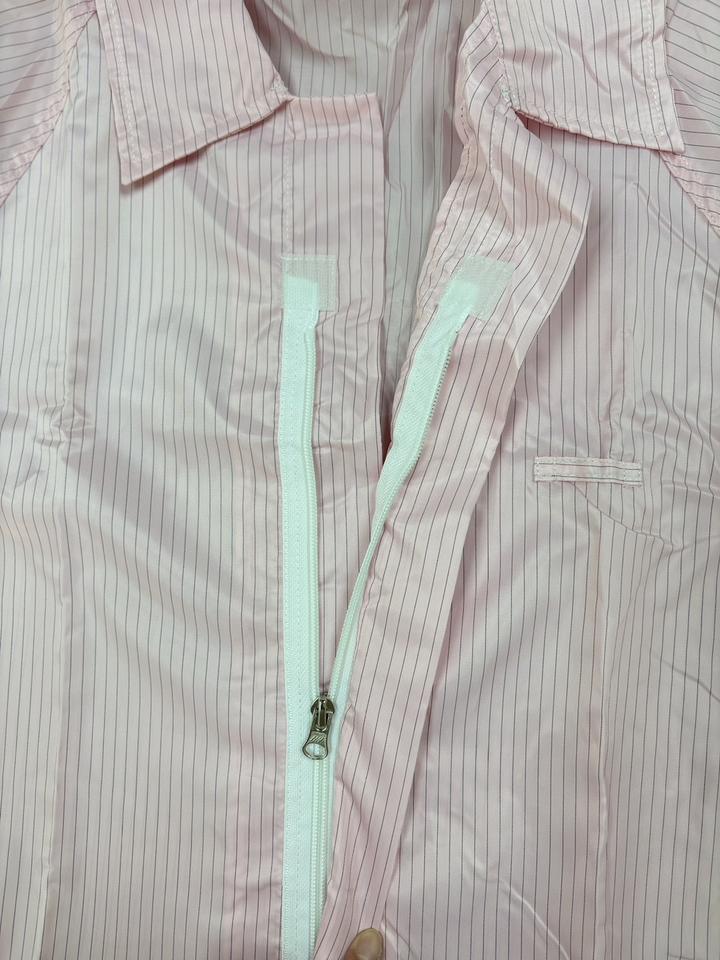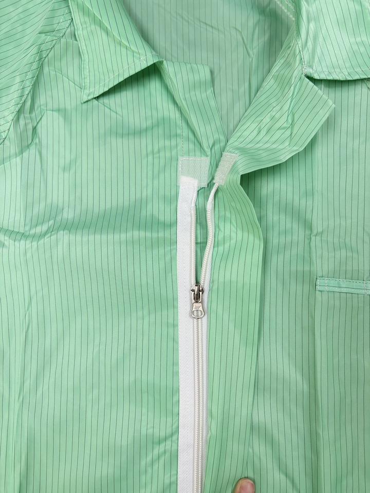 เสื้อคลุมคลีนรูมป้องกันไฟฟ้าสถิตย์แบบยูนิเซ็กซ์ ผลิตจากผ้าโพลีเอสเตอร์ 99% + คาร์บอนไฟเบอร์ 1% พร้อมแถบสี 5 มม. เพื่อความปลอดภัยด้านอิเล็กทรอนิกส์ (ขายส่ง)