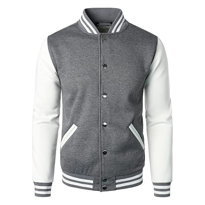 แจ็คเก็ตเบสบอลผ้าฟลีซสีดำแบบยูนิเซ็กซ์ขายส่ง แจ็คเก็ตวาร์ซิตี้แบบเรียบสีพื้นสำหรับผู้ชาย เสื้อโค้ทยาว รุ่นปี 2026