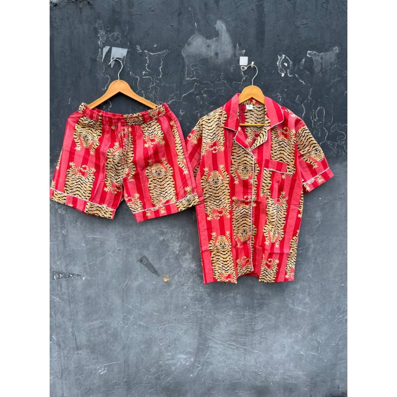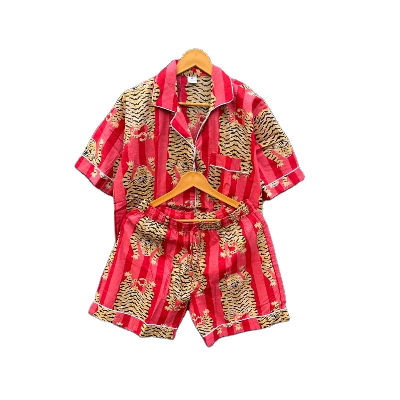 ชุดชุดนอนสั้นพิมพ์ลายเสืออินเดียงานปาร์ตี้สำหรับผู้หญิงสั่งขั้นต่ำ2ชิ้น