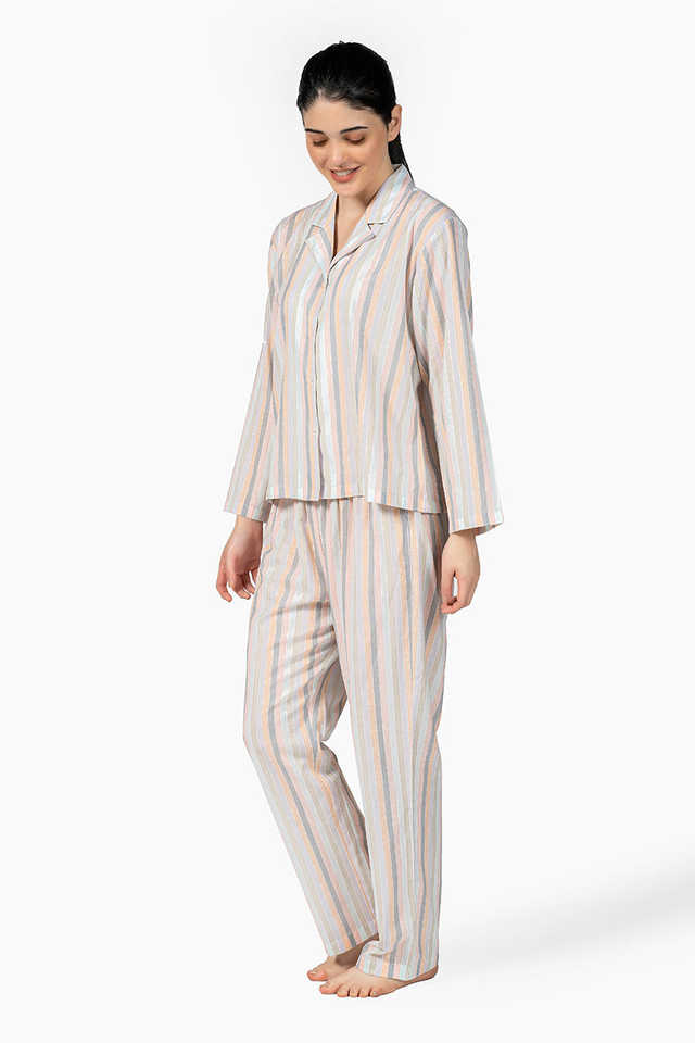 เซ็ตชุดนอนผ้าฝ้าย2ชิ้นสำหรับผู้หญิงระบายอากาศได้ดีสีชมพูและสีขาวสำหรับฤดูร้อน