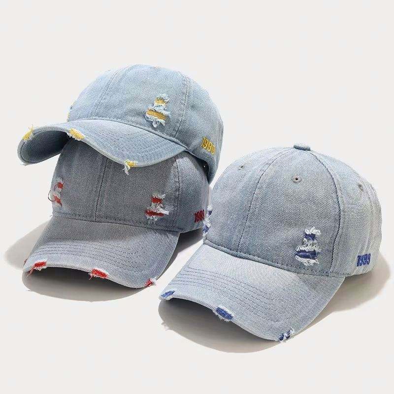 หมวกเบสบอลยีนส์แบบวินเทจสีฟ้าอ่อนสไตล์ลำลองสำหรับทุกเพศ รับทำโลโก้ตามสั่ง แบบขายส่ง