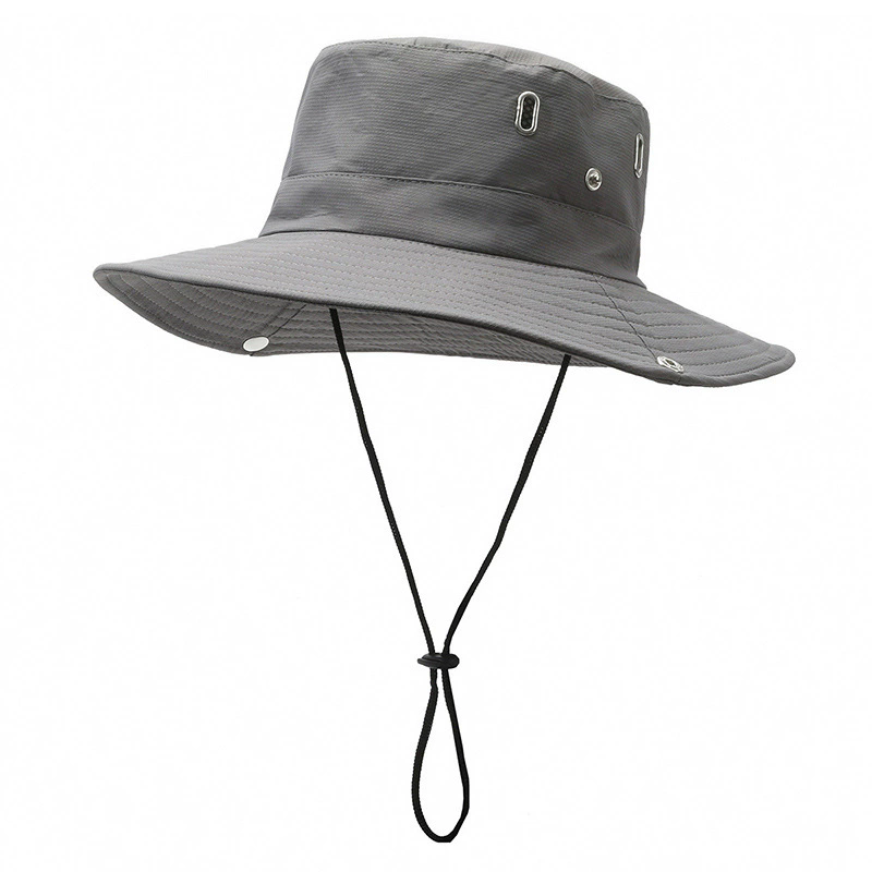 หมวกบักเก็ตแบบสปอร์ต แห้งเร็ว ผลิตจากโพลีเอสเตอร์ 100% สำหรับทุกเพศ ปรับขนาดได้ ปีกกว้าง มีเชือกผูก พับเก็บได้ กันน้ำ เหมาะสำหรับกิจกรรมกลางแจ้ง ขายส่ง