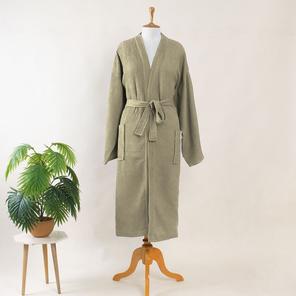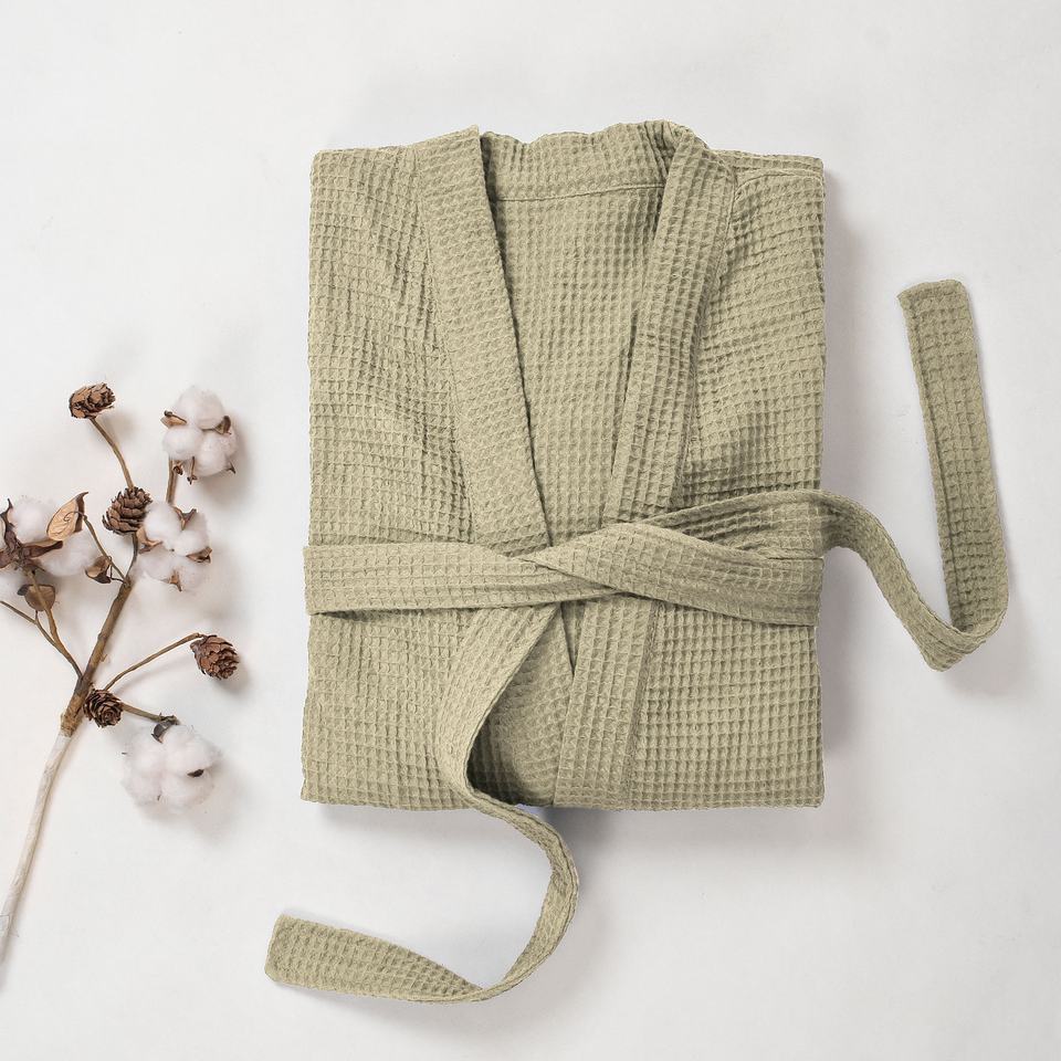 เสื้อคลุมอาบน้ำ100% วาฟเฟิลสำหรับทุกเพศเสื้อคลุมอาบน้ำคอตตอนออร์แกนิกของโรงแรมเสื้อคลุมอาบน้ำผ้าวาฟเฟิลถักซึมซับเร็วสุดหรู