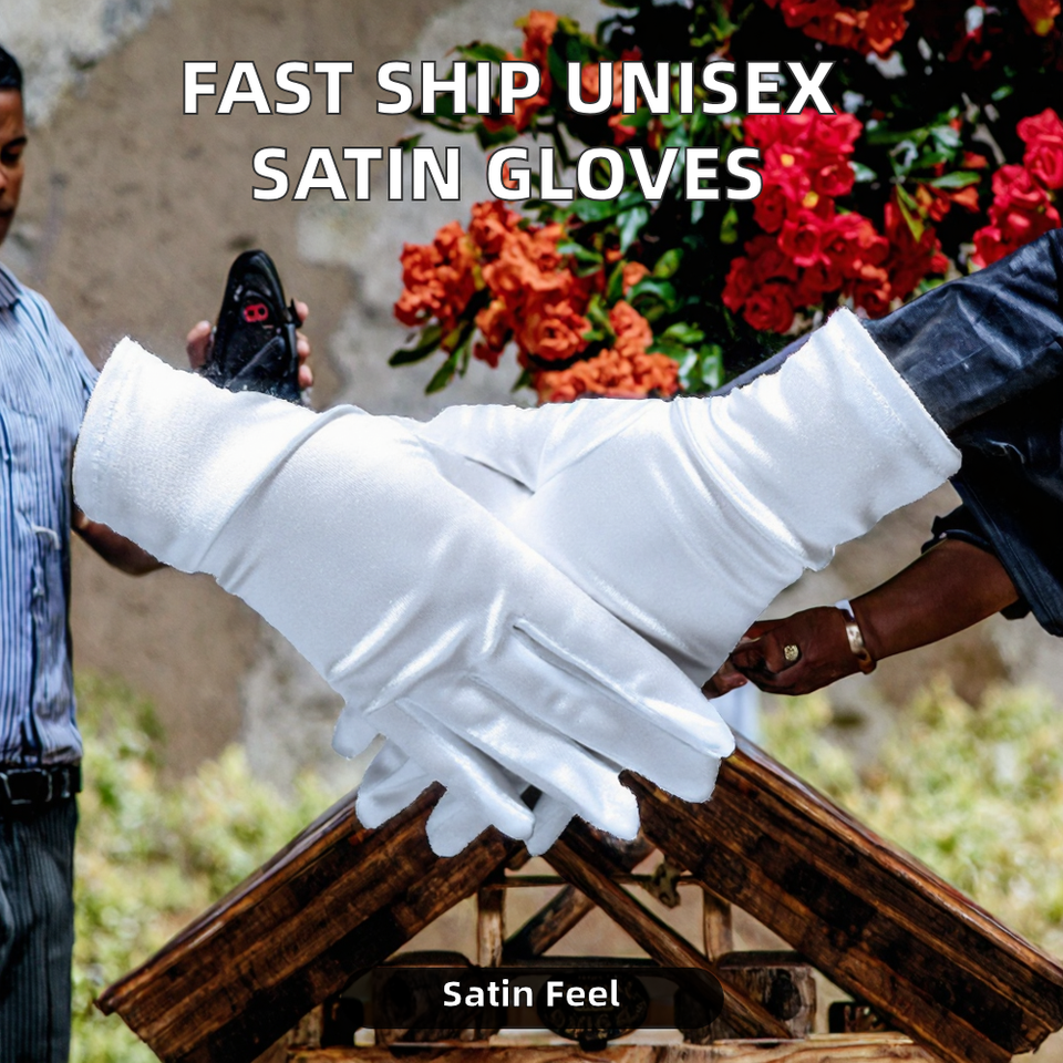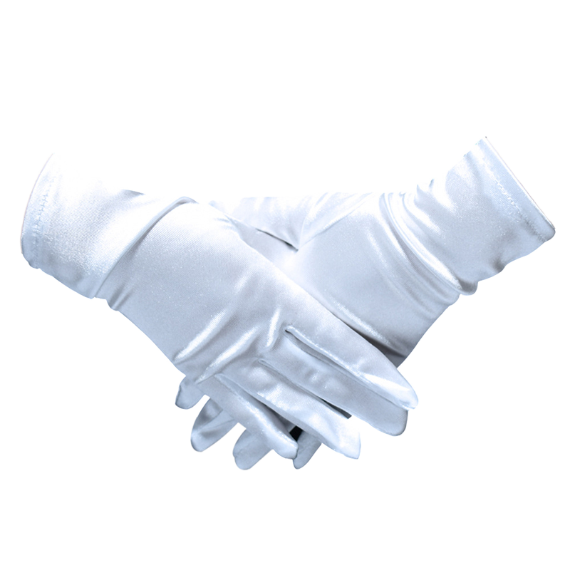 ถุงมือเจ้าสาวสีขาวแบบสั้นสำหรับทุกเพศ ขายส่ง แฟชั่นงานปาร์ตี้ ผ้าซาตินย้อมสีเรียบ ผลิตในปากีสถาน จัดส่งรวดเร็ว