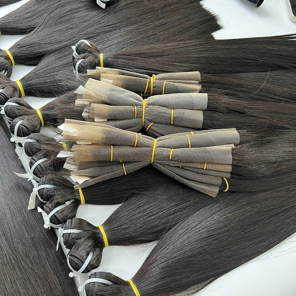 มัดผมตรงกระดูกสีดำสำหรับผู้หญิงสีดำเรียบและเงางามติดทนนาน