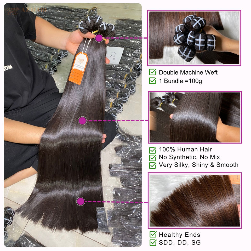 ผมแท้ทรงตรงมีปลายสองด้านสำหรับมัดผมดิบของผู้บริจาคที่ยังไม่ได้แปรรูปจากเวียดนาม