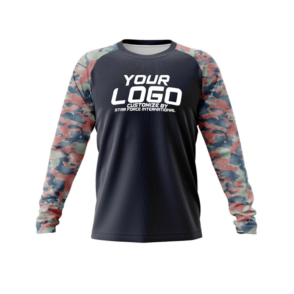 เสื้อตกปลาระบายอากาศได้ดีแห้งเร็ว UPF 50 + แขนยาวออกแบบเองมีฮู้ดเสื้อผ้าตกปลา