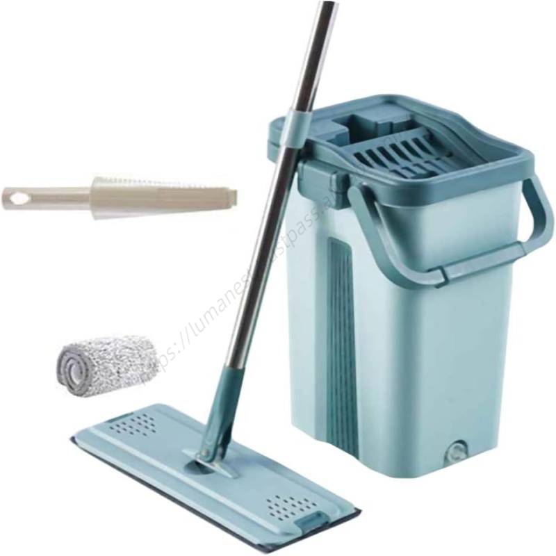 ไม้ถูพื้นแบบแบนพร้อมถังสำหรับใช้ในบ้านแบบหรูหรา ซักทำความสะอาดได้โดยไม่ต้องใช้มือ ใช้ได้ทั้งแบบเปียกและแบบแห้ง หัวไม้ม็อบไมโครไฟเบอร์แบบหมุนได้และยืดหดได้