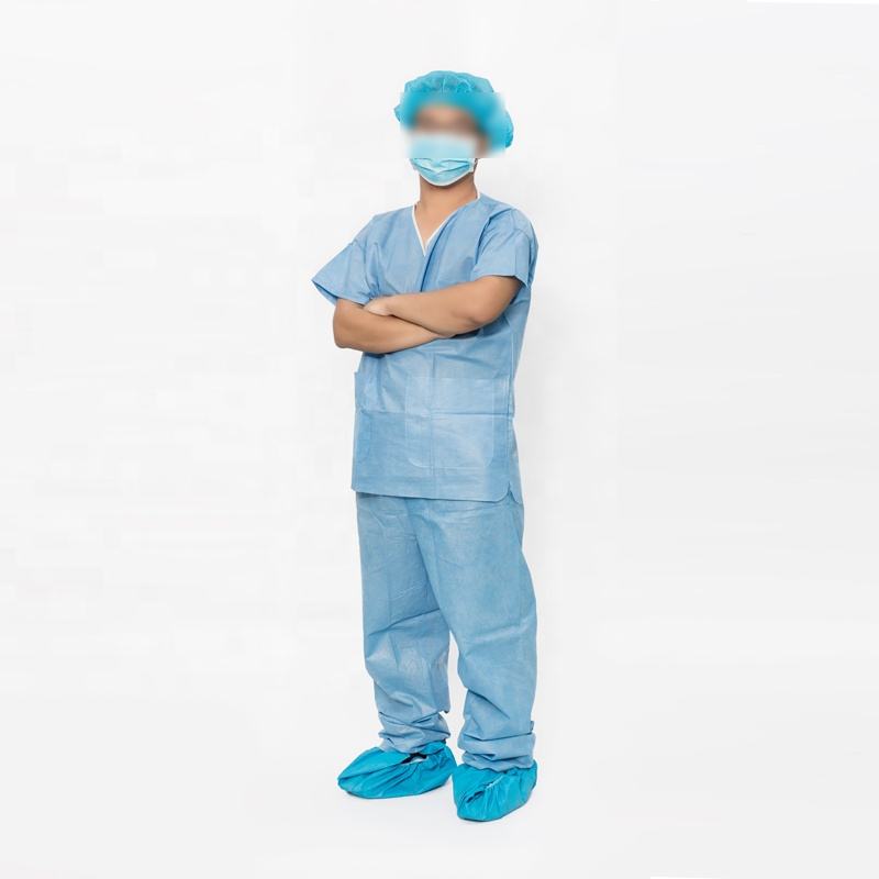 ชุดผ่าตัดผ้าใยสังเคราะห์สำหรับผู้ชายและผู้หญิงชุดขัดแบบใช้แล้วทิ้งคอกลม spp/sms