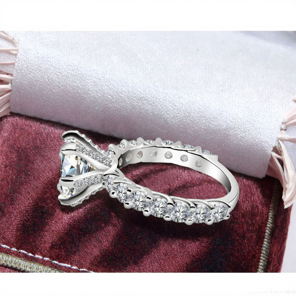 แหวนแต่งงานและหมั้นเพชรโมอิสซาไนต์ทรงบริลเลียนต์ชุบโรเดียมเงินแท้ ได้รับการรับรองจาก GRA เกรด VVS1 สำหรับผู้หญิง ขายส่ง
