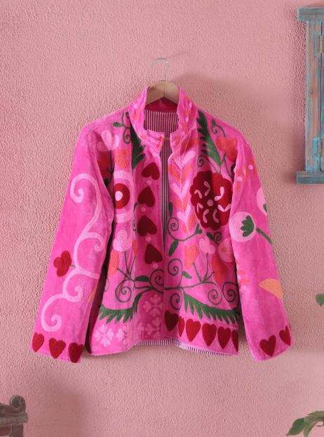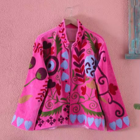 เสื้อโค้ทผ้ากำมะหยี่ปักลายซูซานีสไตล์โบฮีเมียนสำหรับฤดูหนาว เสื้อคลุมผ้าฝ้ายลายดอกไม้ทำมือสำหรับงานปาร์ตี้สำหรับผู้หญิง ขายส่ง