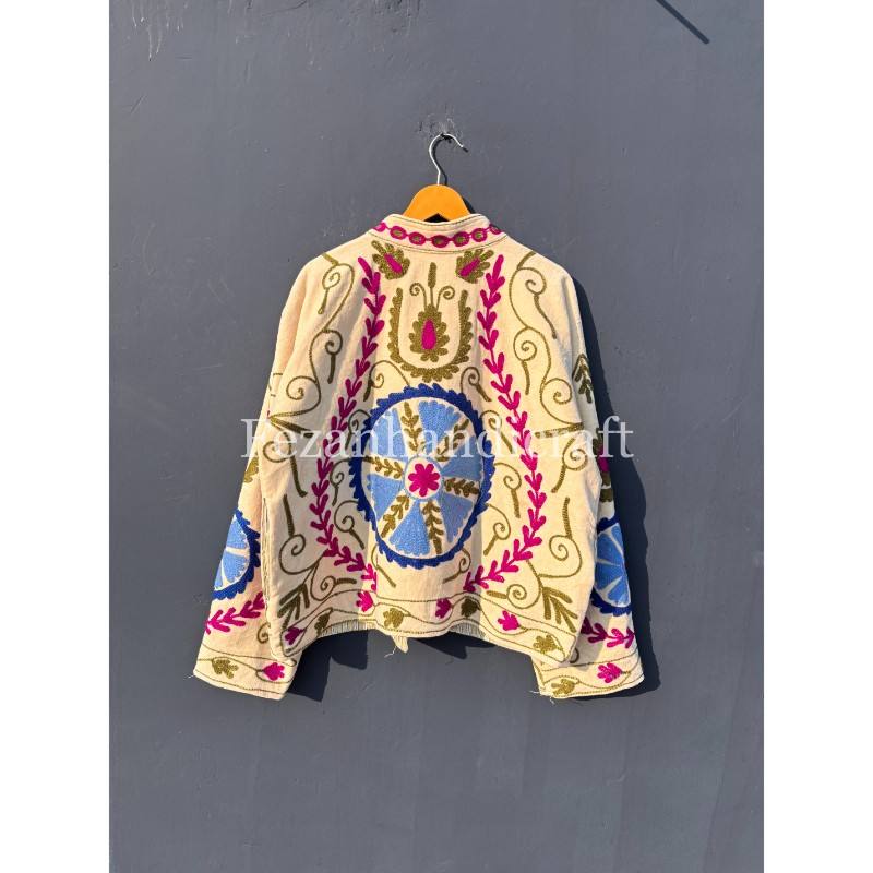 เสื้อโค้ทกำมะหยี่ซูซานีปักลายอุซเบกิสถาน สไตล์โบฮีเมียนชิค พร้อมกระเป๋าข้างสองข้าง เสื้อแจ็คเก็ตฤดูหนาวแบบยูนิเซ็กซ์
