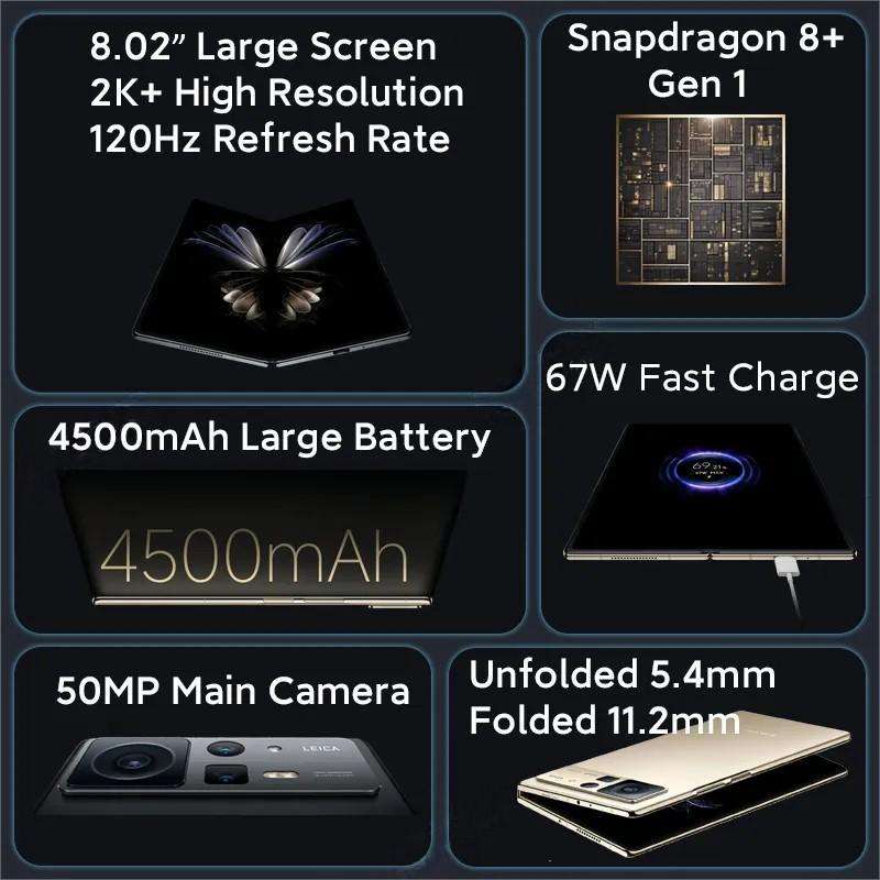 สมาร์ทโฟน5G รุ่นขายส่งสำหรับ Xiao Mi Mix Fold 2พับ8.02 "พับหน้าจอ Snapdragon Gen 8 + OCTA Core ภาษาจีน