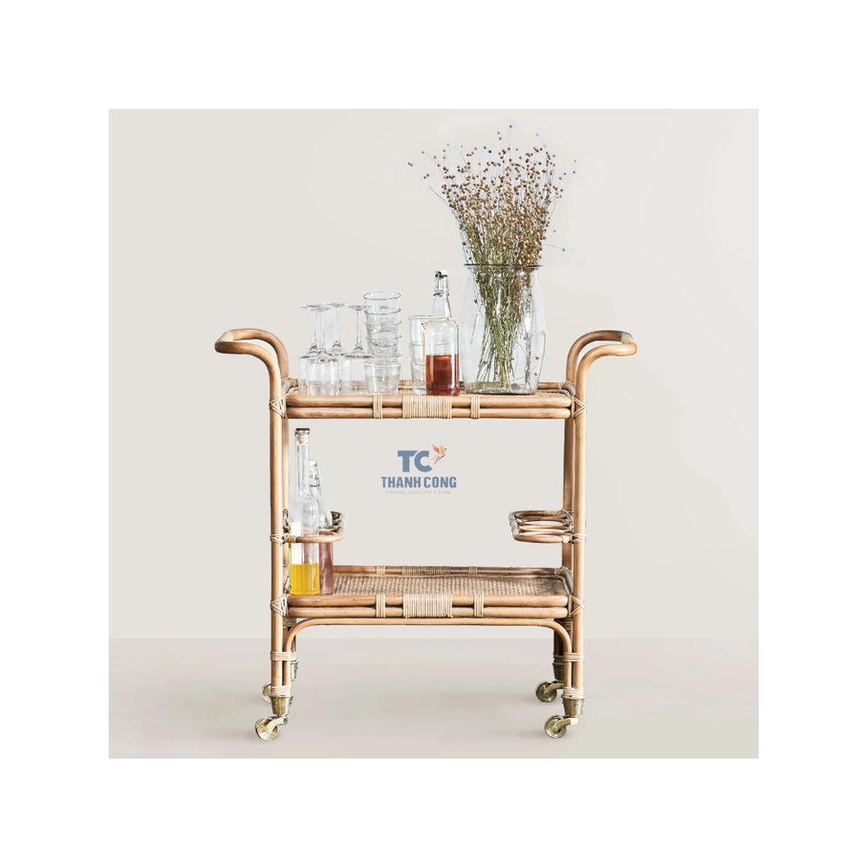 ขายส่งเวียดนามโรงงานขายตรงสไตล์โมเดิร์นหวายบาร์รถเข็นเครื่องดื่มรถเข็นในร่ม/กลางแจ้งหวายบาร์รถเข็น