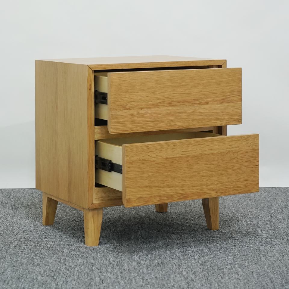 โรงงานผลิตในเวียดนาม รับผลิตแบบ OEM/ODM โต๊ะข้างเตียงไม้ยางพารา 2 ลิ้นชัก สำหรับห้องนอน ขายส่งจากโรงงานโดยตรง
