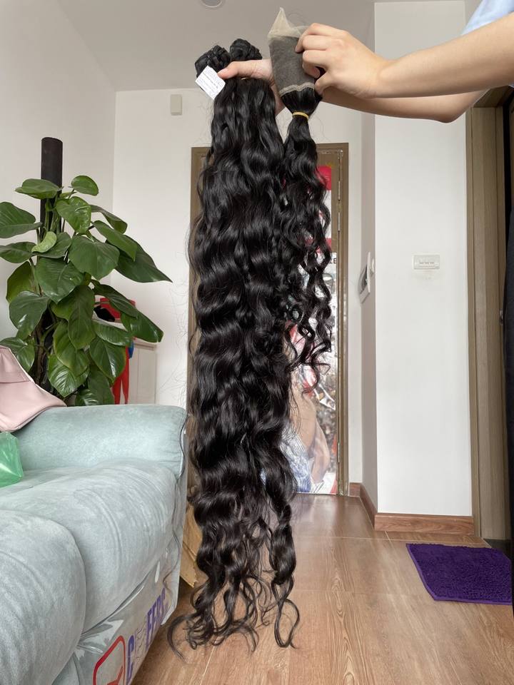 ผมแท้เวียดนามและกัมพูชาแบบเรมี่ แบบตรงธรรมชาติ แบบลอนน้ำ แบบไม่ผ่านการแปรรูป แบบต่อผม น้ำหนัก 100 กรัม ไม่หลุดร่วง