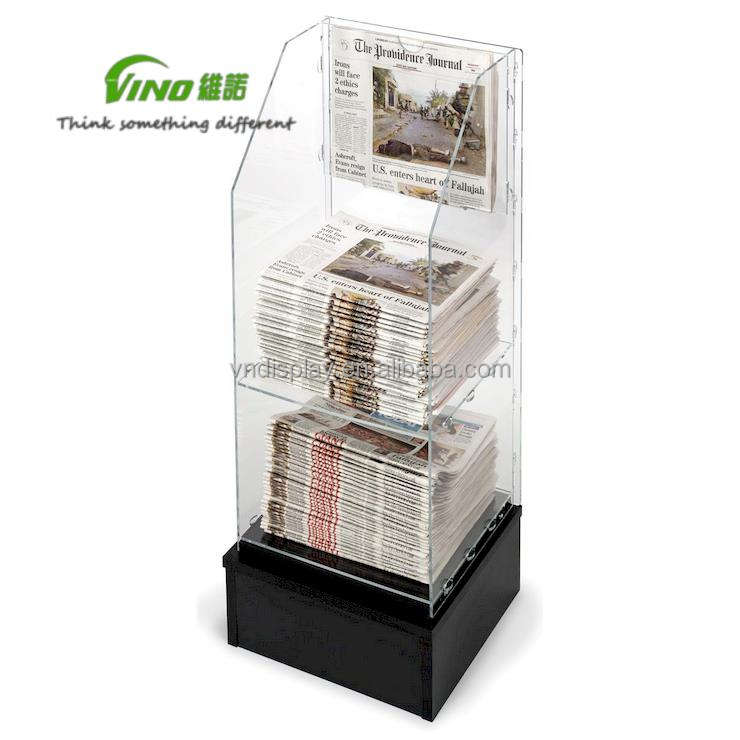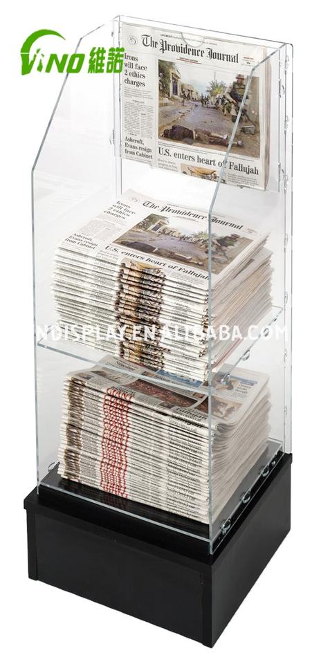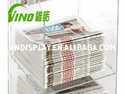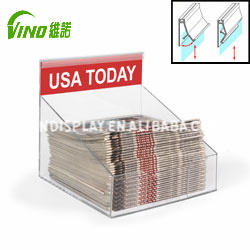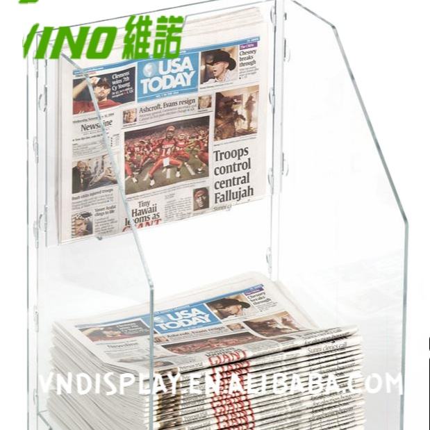 แท่นวางโบรชัวร์อะคริลิคสำหรับวางบนเคาน์เตอร์ ยี่ห้อวีโน่ สำหรับขายส่ง พิมพ์ออฟเซ็ต CMYK ใช้เป็นแท่นวางหนังสือพิมพ์ ตู้โชว์สินค้า สำหรับวางบนเคาน์เตอร์ POS