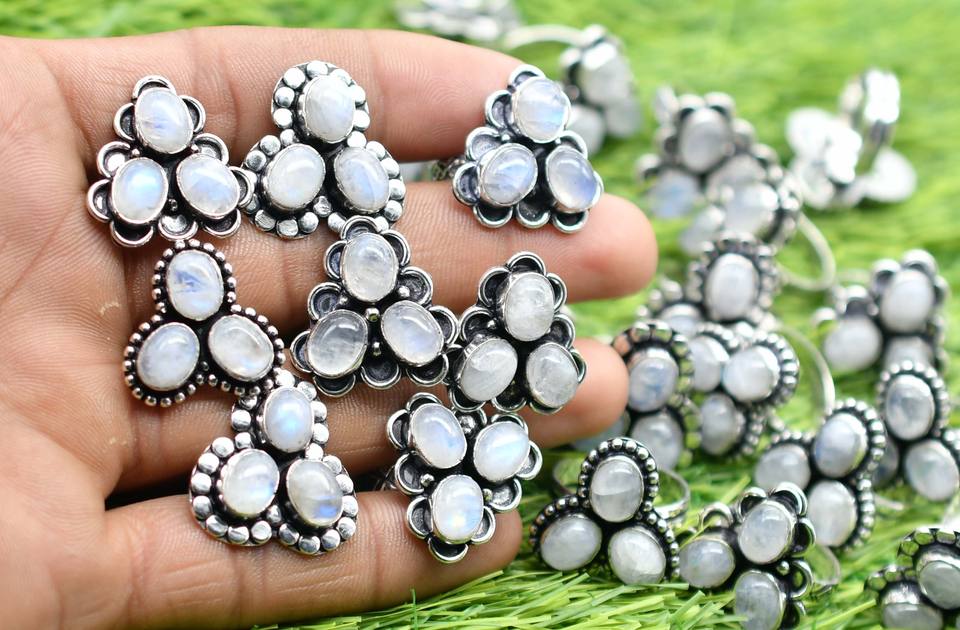แหวนเงิน925สไตล์วินเทจสำหรับผู้หญิงประดับพลอยมูนสโตนแบบดั้งเดิมตัวเรือนชั้นดีตัดทรงรีสำหรับงานแต่งงาน