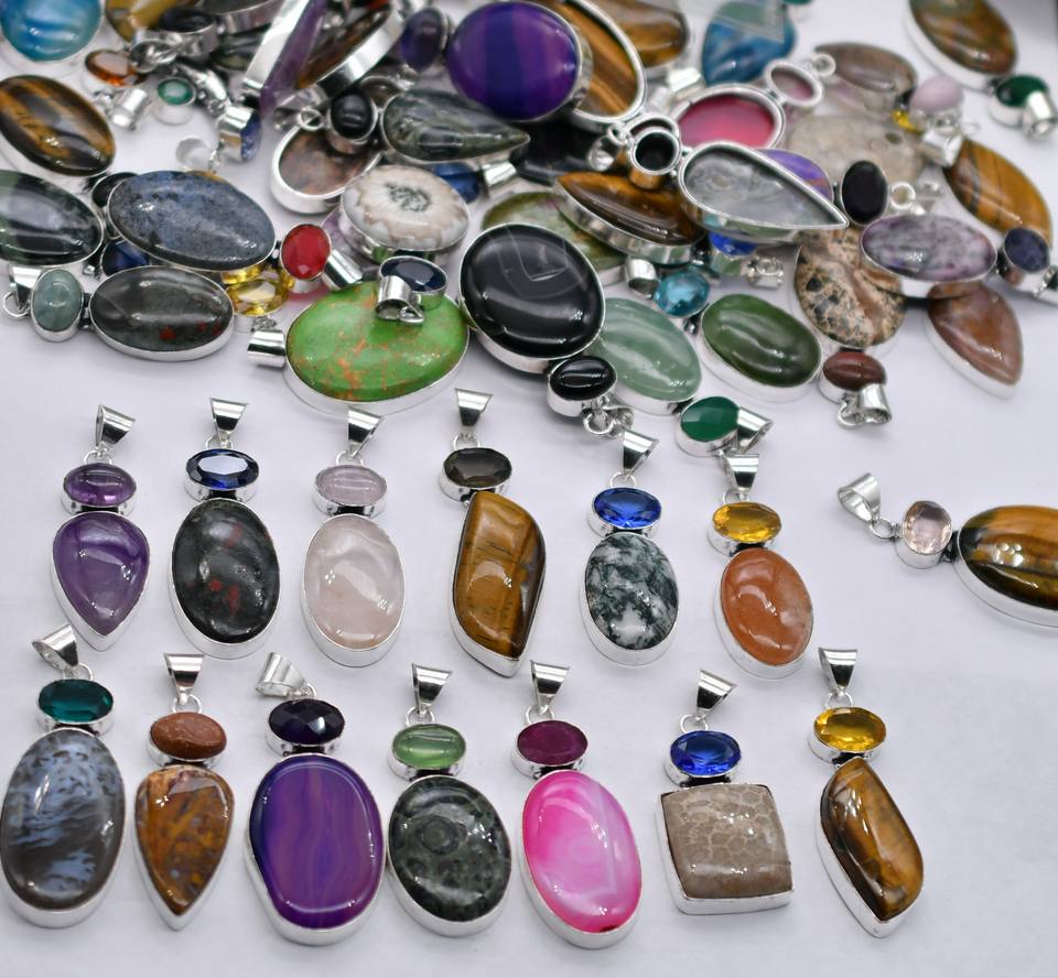 จี้ห้อยคอทำมือประดับพลอยหลากชนิดชุบเงินแท้ 925 สไตล์วินเทจ ขายส่ง เครื่องประดับทองเหลืองชุบเงิน