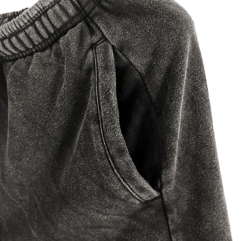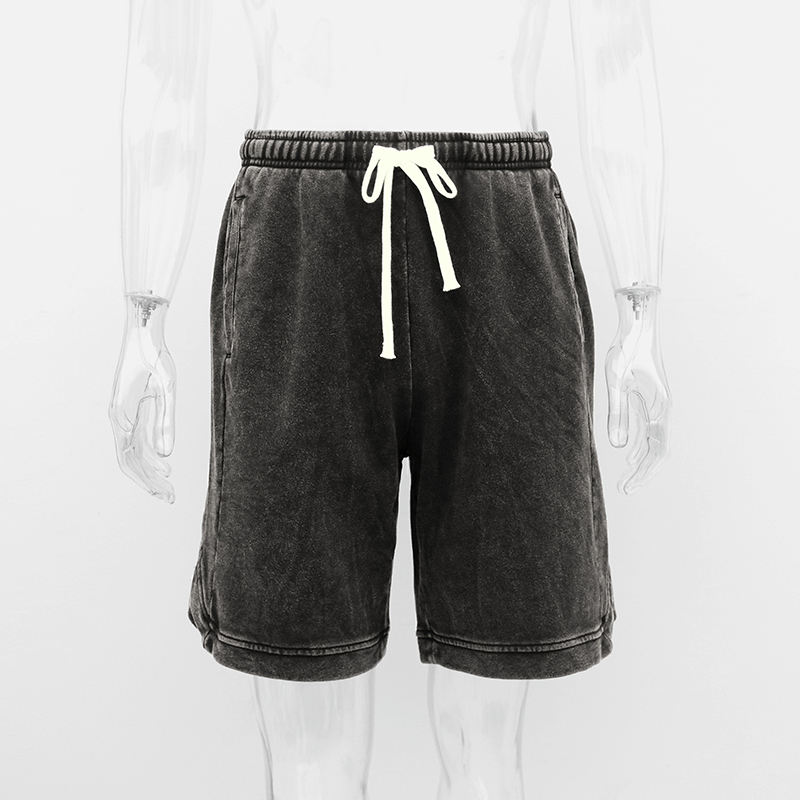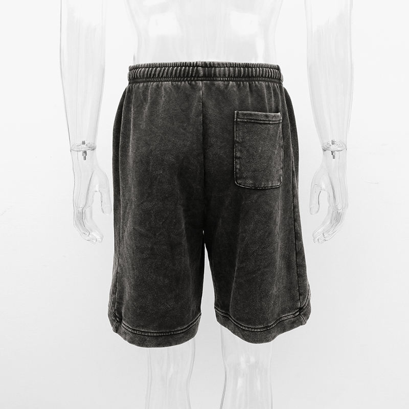 กางเกงขาสั้นผ้าฝ้ายสีดำแนววินเทจสำหรับผู้ชายดีไซน์แบบมีกระเป๋า