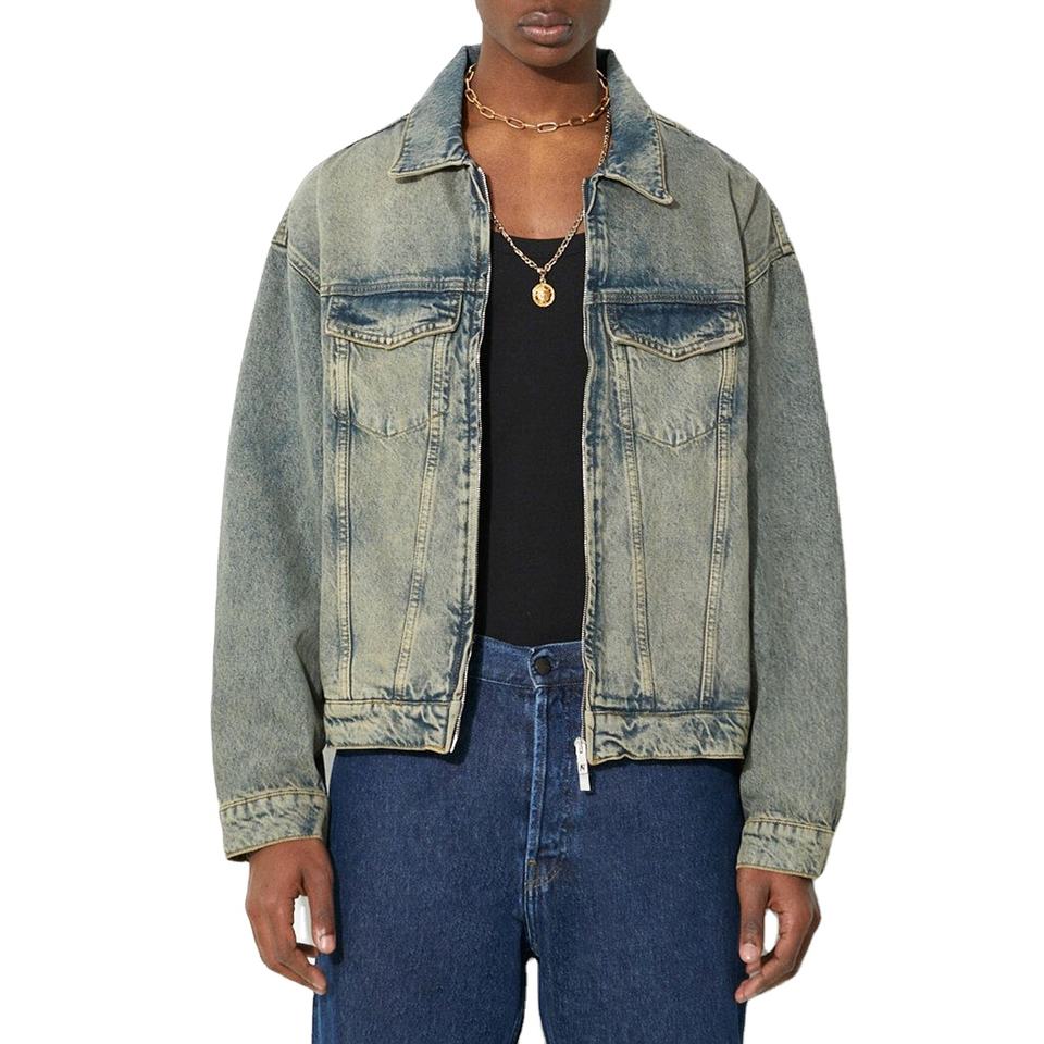 แจ็กเก็ตผ้ายีนส์สไตล์ย้อนยุคสำหรับผู้ชายเสื้อแจ็กเก็ตยีนส์ฟอกสีสไตล์วินเทจ