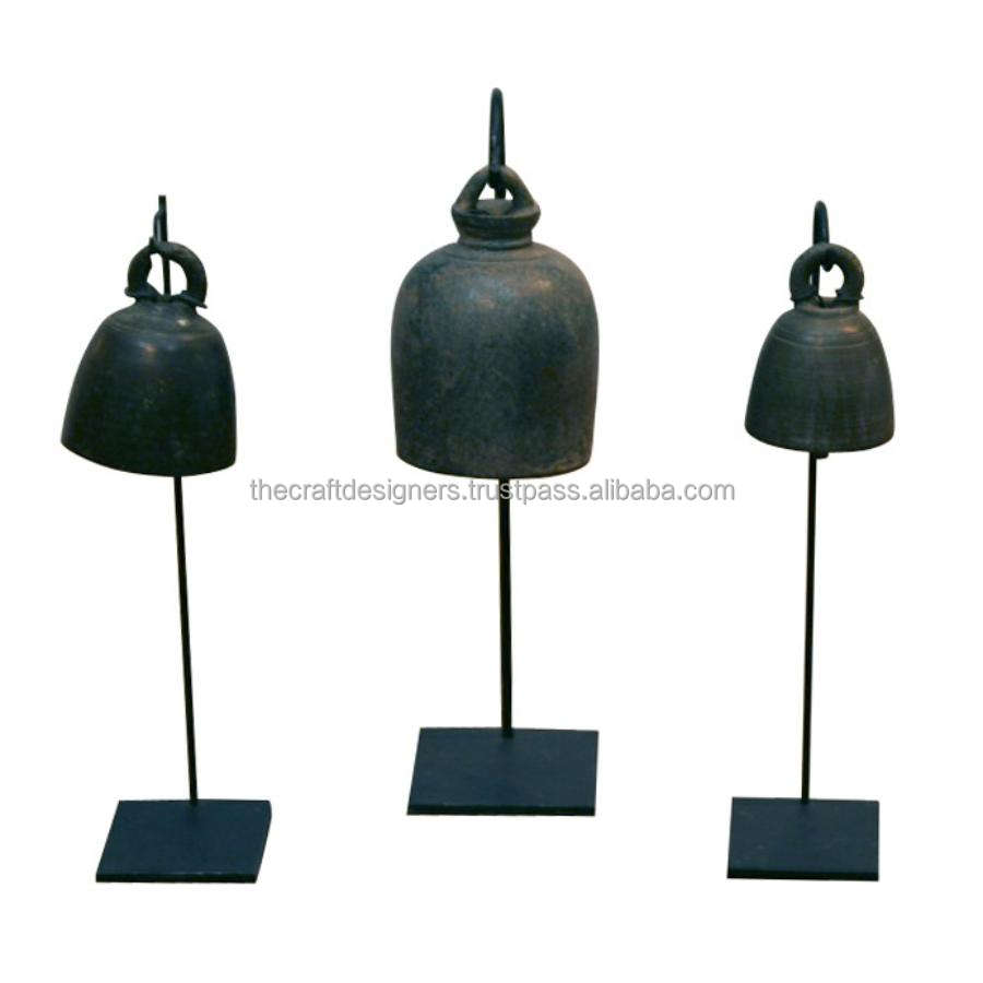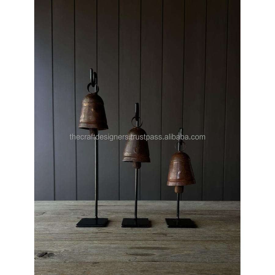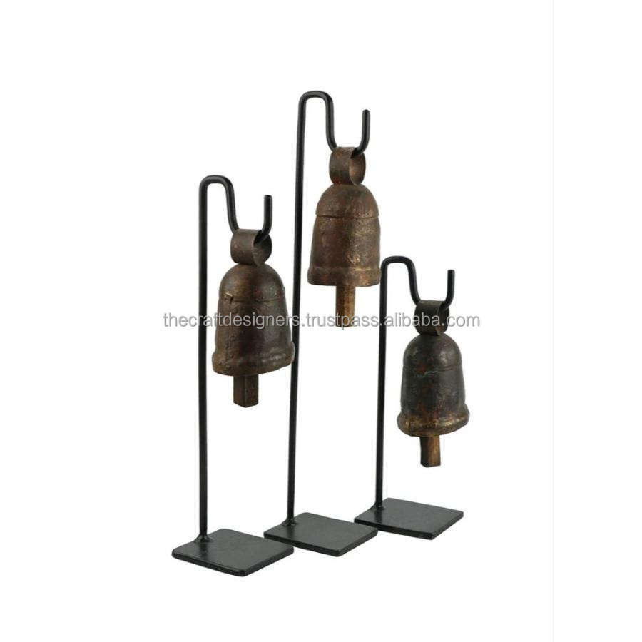 ชุดระฆังสไตล์วินเทจทำจากโลหะตกแต่งโต๊ะแบบชนบทพร้อมขาตั้งสำหรับเทศกาลคริสต์มาสบ้านฟาร์มแบบวินเทจ