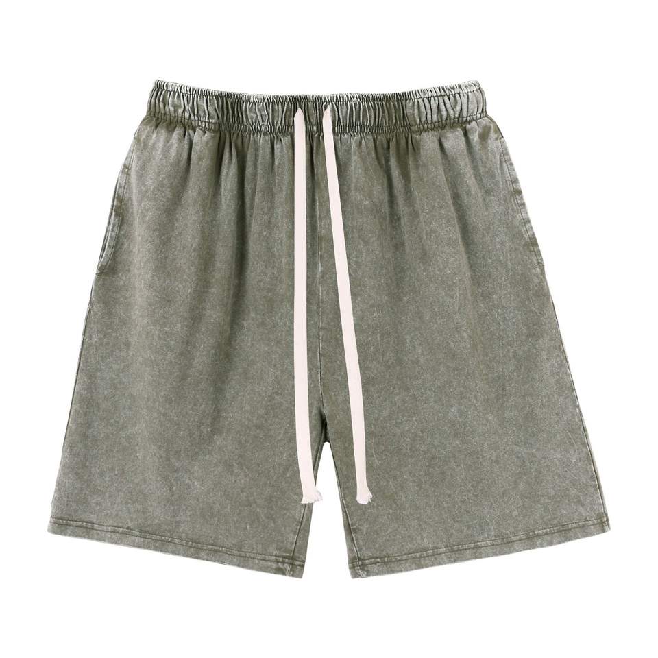 กางเกงขาสั้นผู้ชายผ้าฝ้ายแบบวินเทจกางเกงขาสั้นแฟชั่นผ้าทอลำลองซักด้วยกรดสำหรับฤดูร้อนออกแบบโลโก้ได้ตามต้องการ