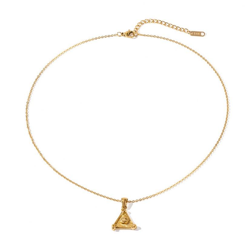 สร้อยคอแฟชั่นวินเทจสแตนเลสสตีลสำหรับผู้ชาย สไตล์ทันสมัย ชุบทอง 18k ลายสามเหลี่ยมรูปดวงตา กันน้ำ