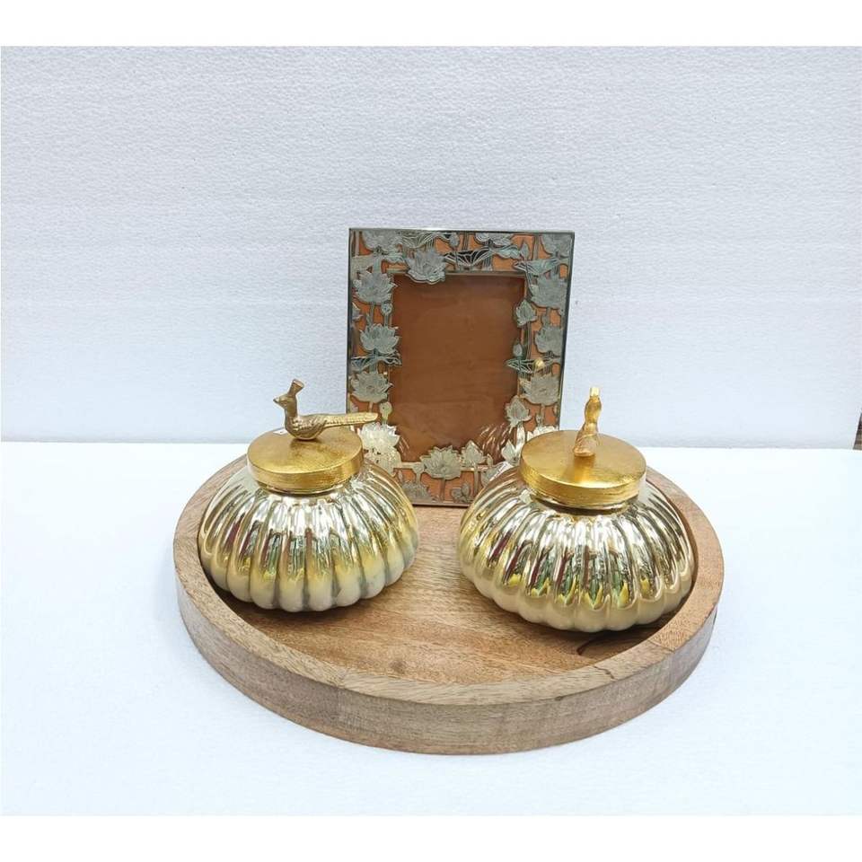 ชุดกล่องเก็บผลไม้อบแห้งหรูหราพร้อมฐานไม้ วินเทจสีทอง สำหรับขายส่ง เหมาะสำหรับเทศกาลดีวาลีและของขวัญองค์กร