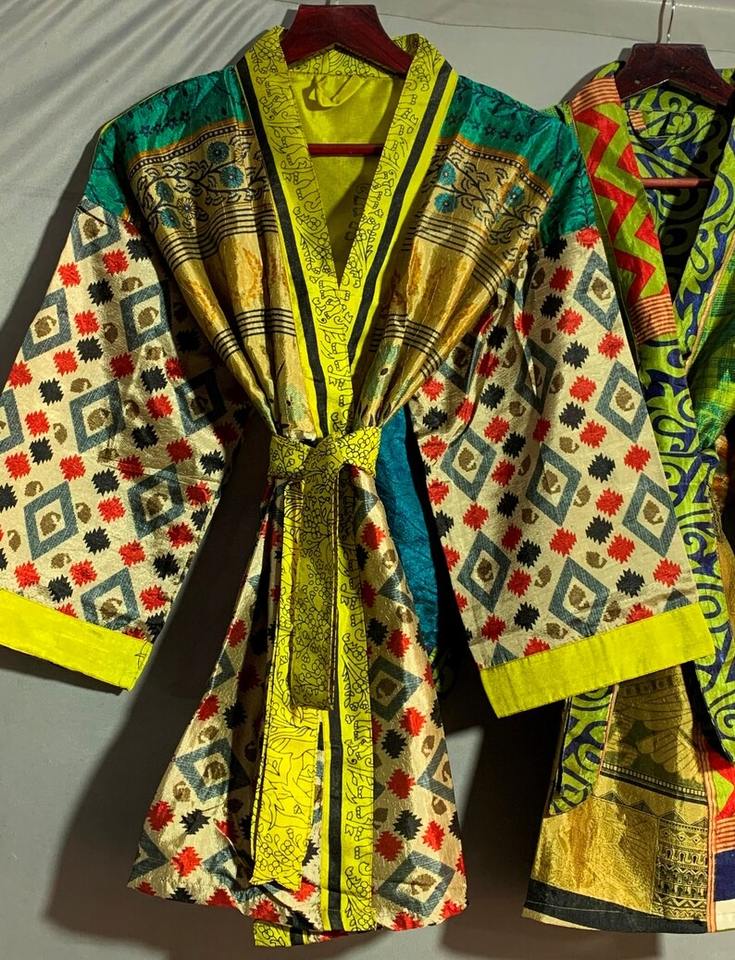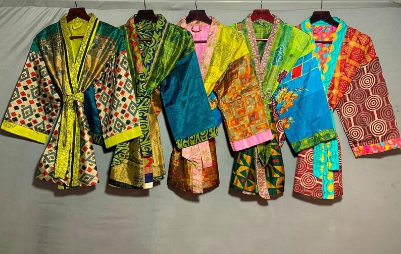 ชุดกิโมโนผ้าไหมอินเดียทำมือสไตล์วินเทจขายส่ง ชุดส่าหรีผ้าซาตินสำหรับผู้หญิง ดีไซน์แฟชั่นชายหาด ของขวัญที่สมบูรณ์แบบสำหรับเธอ