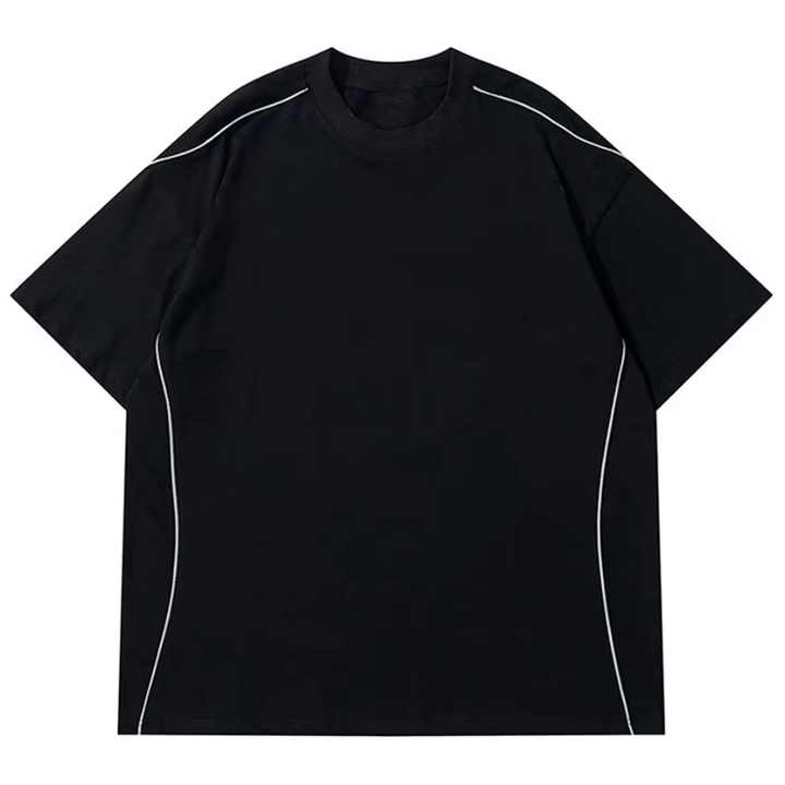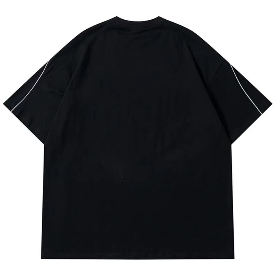 เสื้อยืดผู้ชายสไตล์วินเทจ ผ้าฝ้าย ลายการ์ตูน สไตล์เรโทร สตรีทแฟชั่น น้ำหนัก 300 กรัม แต่งขอบสีตัดต่อ ทรงหลวม ใส่สบาย แฟชั่นฤดูร้อน ขายส่ง