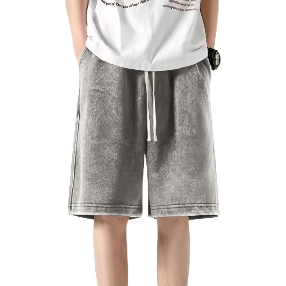 กางเกงขาสั้นผู้ชายวินเทจแบบมีกระเป๋าสีทึบแห้งเร็วฟอกสีกรด