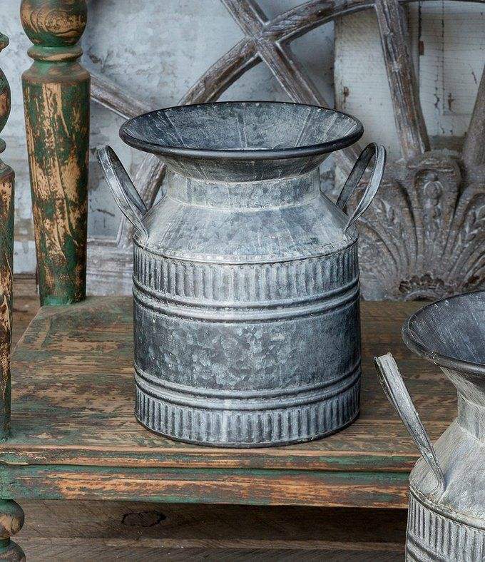 แจกันดอกไม้โลหะวินเทจขายส่ง ของตกแต่งโต๊ะกลาง แจกันเหล็กชุบสังกะสีแบบทำเก่า ถังใส่ดอกไม้สไตล์เรสติก ถังจัดดอกไม้
