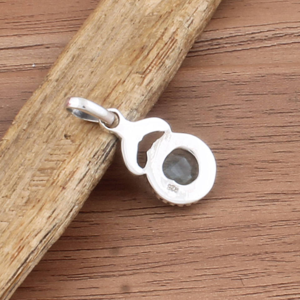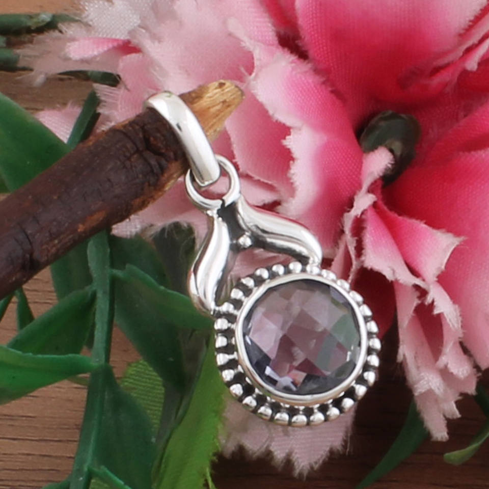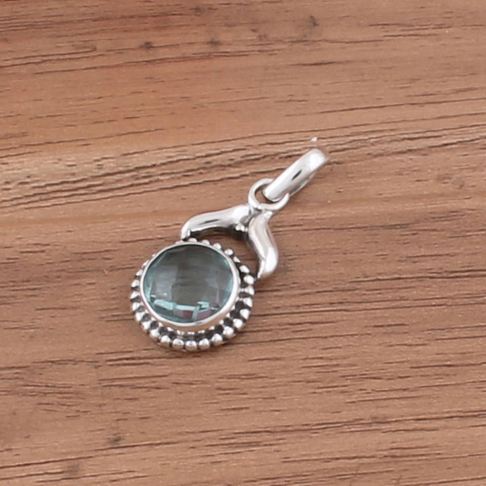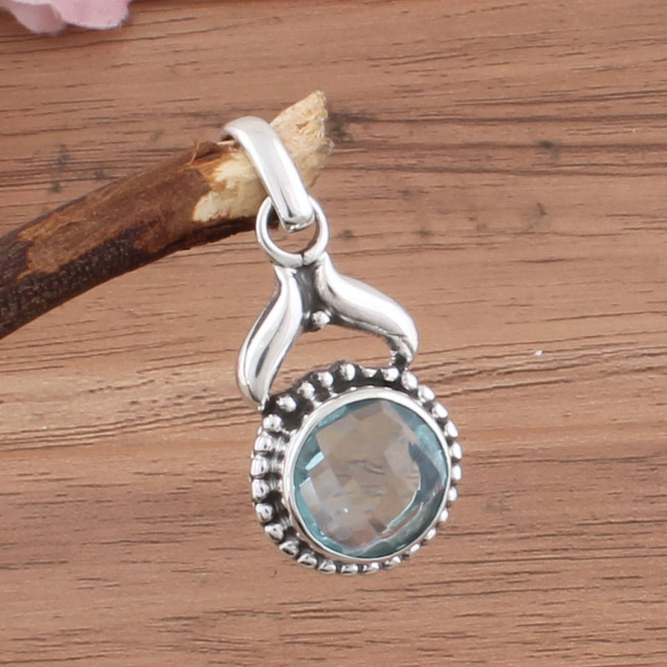 Wholesale Vintage Natural Blue Topaz Pendant 925 Sterling Silver Platinum Plated Dotted Handmade Gemstone Charm Bulk Price