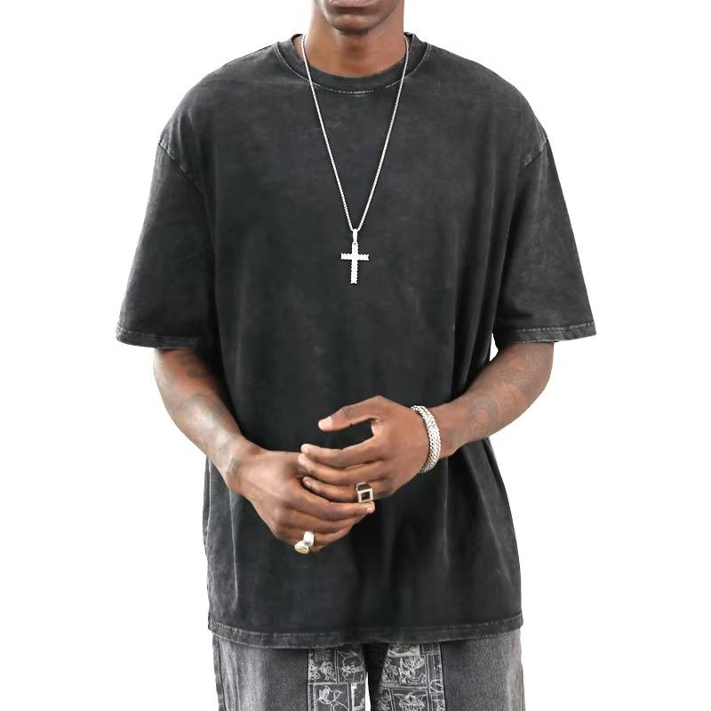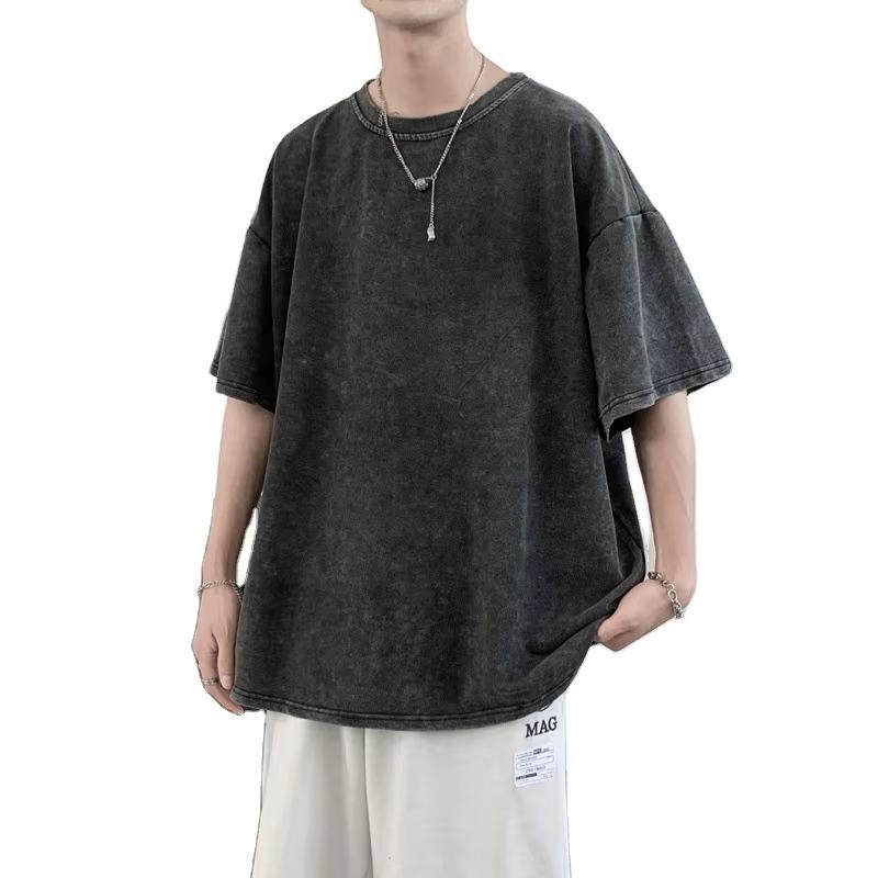 เสื้อยืดผู้ชายทรงโอเวอร์ไซส์สไตล์วินเทจขายส่ง ผ้าถัก 180 GSM ผ้าฝ้าย 100% ซักย้อมสีแบบแอซิดวอช พิมพ์ลาย DTG เสื้อยืดเนื้อหนา