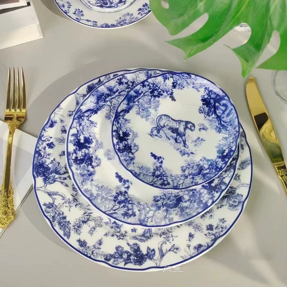 ชุดอาหารจานเซรามิกหรูหราลายพืชวินเทจแบบขายส่ง ผลิตจากกระดูกจีน เกรดอาหาร 3 ชิ้น สำหรับเป็นของขวัญ