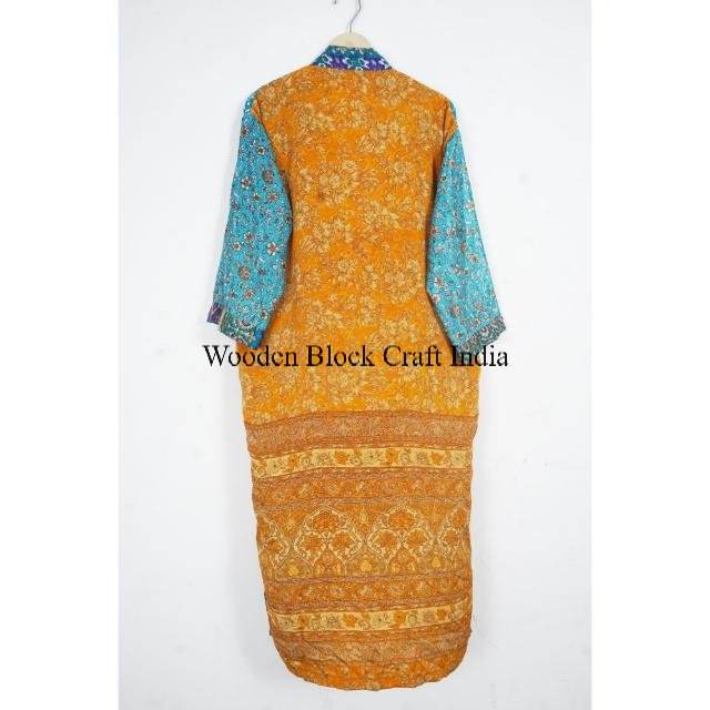 ชุดเดรสยาวสไตล์คิโมโนผ้าไหมวินเทจสุดหรูสำหรับขายส่ง ลายพิมพ์ดอกไม้หลากสีสัน ดีไซน์อินเดียโบโฮ ระบายอากาศได้ดี เหมาะสำหรับฤดูร้อน