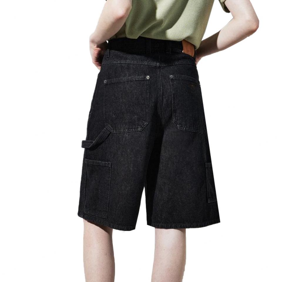 กางเกงขาสั้นผู้ชายทรงแบ็กกี้เอวสูงผ้าเดนิมคอตตอน 100% สไตล์วินเทจสีดำล้างสี ขายส่ง