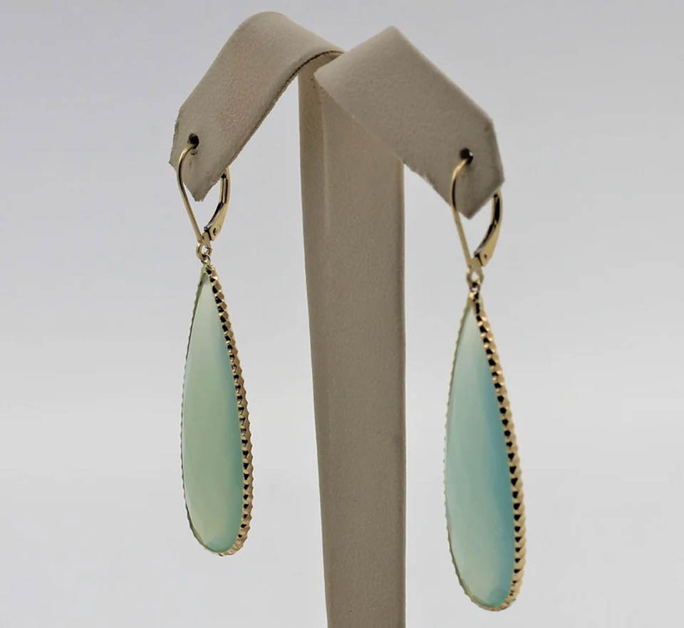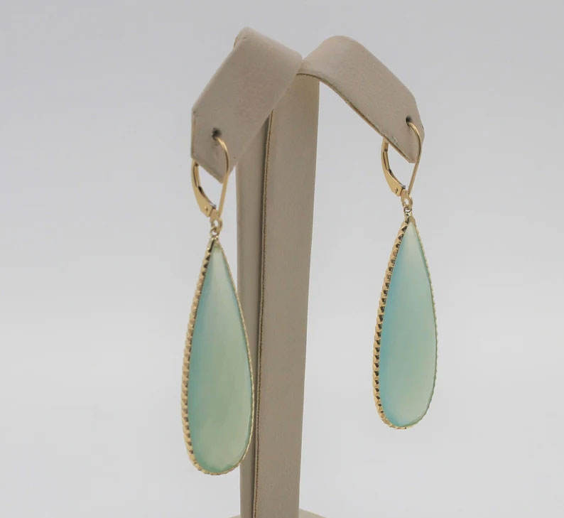 ต่างหูห้อยระย้าทรงหยดน้ำสีเขียวสไตล์วินเทจชุบทองบนเงินแท้สำหรับผู้หญิง ขายส่ง