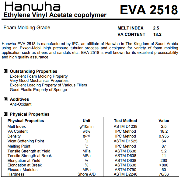 เม็ดพลาสติก EVA 2518เอทิลีนไวนิลอะซิเตท