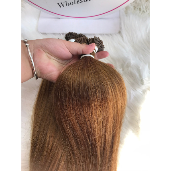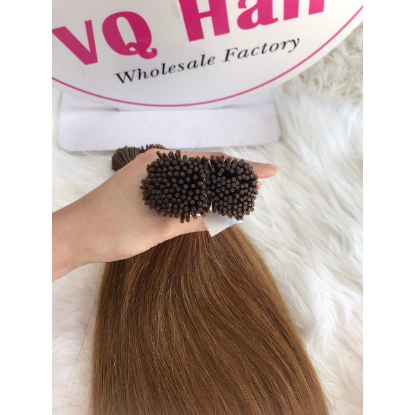 ผมต่อปลายผมแท้สำหรับผู้หญิงผิวดำผมมนุษย์สีน้ำตาลตรงธรรมชาติเกรดเวียดนาม
