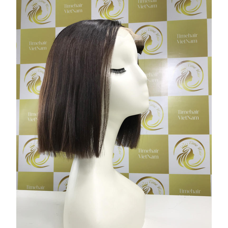 วิกผมแท้ขนาด10-12นิ้วผมบ๊อบสีน้ำตาลเบอร์กันดีเข้มผมต่อจากเวียดนาม